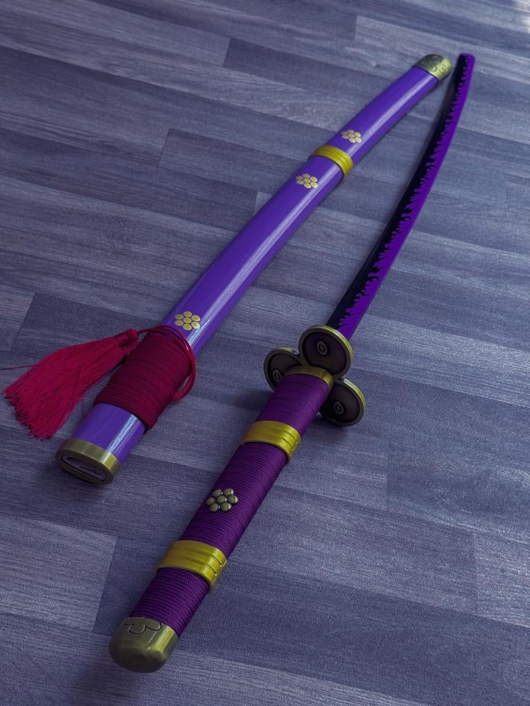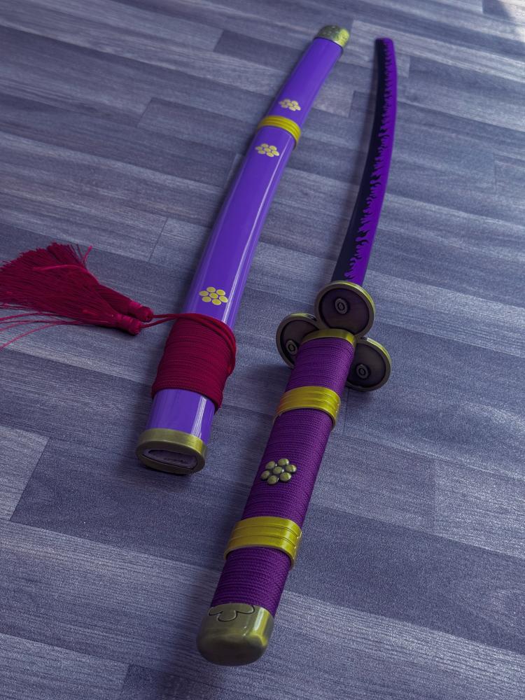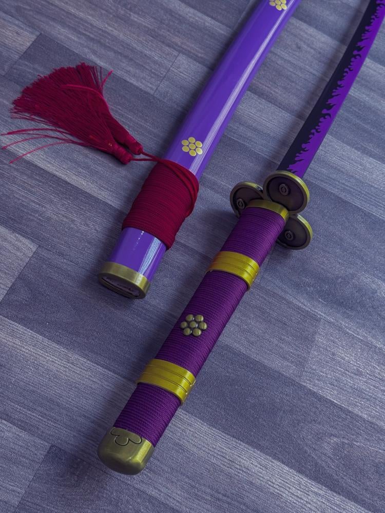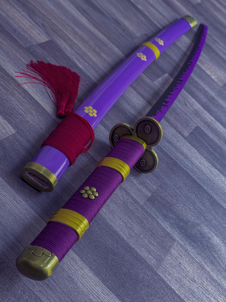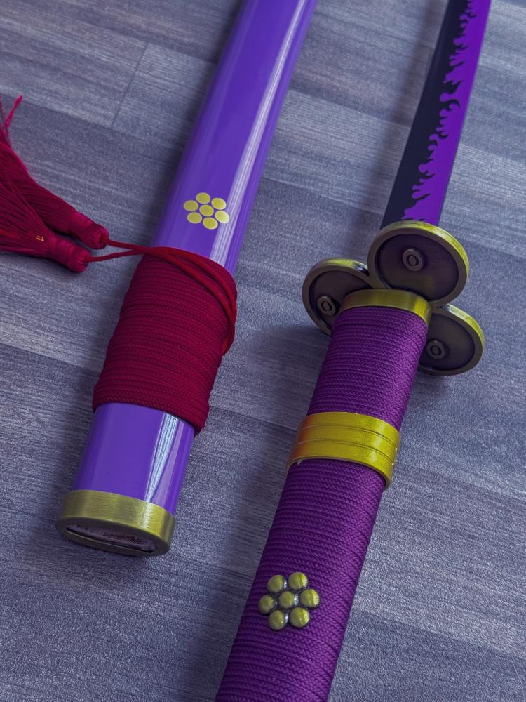 - يمتاز سيف زورو إنما فولاذ بتصميمه الفريد الذي يعكس روح المسلسل الشهير "ون بيس". يستخدم السيف الفولاذ الكربوني 1045 في صنع النصل، مما يضمن صلابة ودقة في الأداء