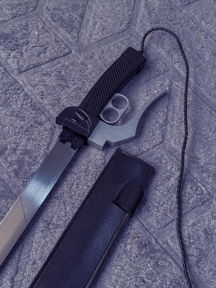 - تتميز القبضة بتصميم فريد يعكس شخصية المحاربين في السلسلة، كما أن الغمد المصنوع من الجلد والاقمشة يضفي عليه لمسة من الأناقة والواقعية.