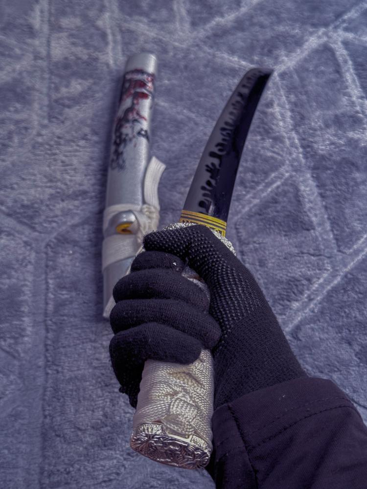 تنبيه: سوف تجد على السيف الحديدي بعض من الزيت للمحافظه على النصل من التأكل