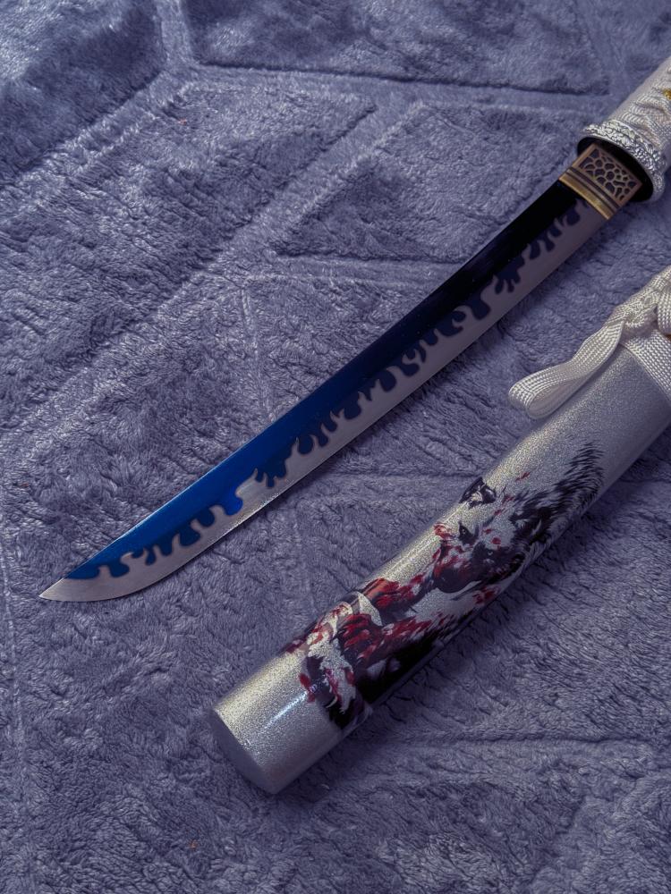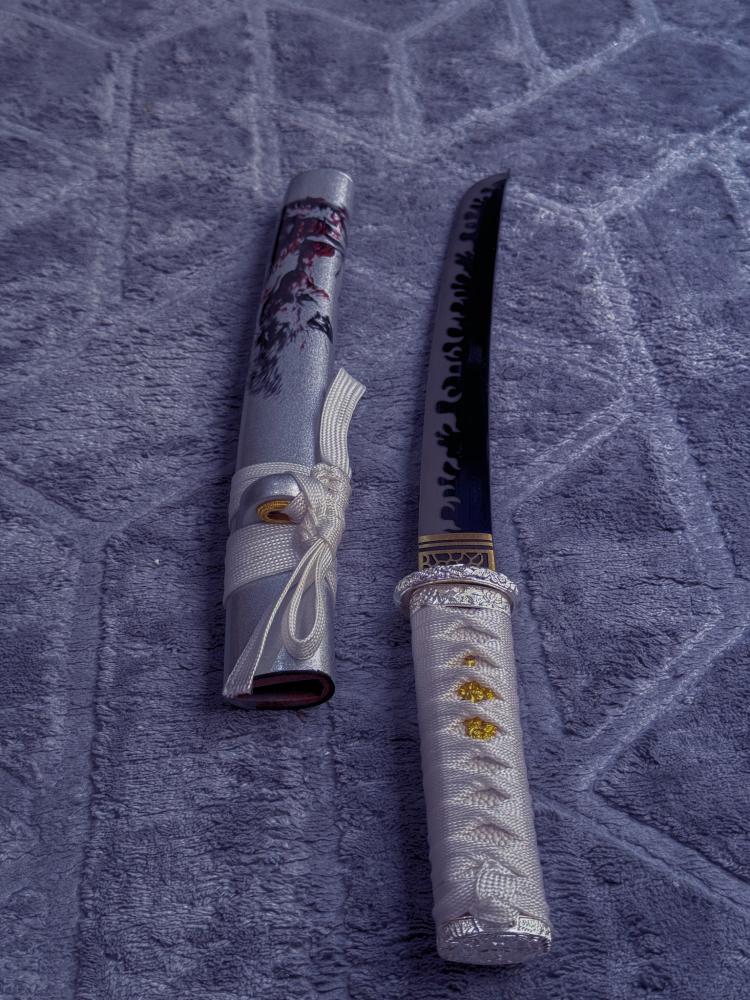 - Full Tang - تمتد الشفرة على طول المقبض بالكامل لتكون مثالية للاستقرار والمتانة أثناء الاستخدام العملي (هذا التصميم هو تصميم سيوف كاتانا الحقيقيه التي امتلكها محاربي الساموراي قديما)